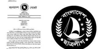 রাষ্ট্রীয়ভাবে ছাত্রলীগকে নিষিদ্ধ করে প্রজ্ঞাপন জারি
