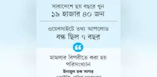 হাসিনা সরকারের গত ৬ বছরে দেশজুড়ে খুন ১৯ হাজার ৪০ জন