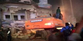 বুলডোজার দিয়ে নাটোর জেলা আওয়ামী লীগের কার্যালয় গুঁড়িয়ে দিল ছাত্র জনতা