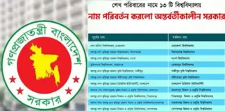 শেখ পরিবারের নামে থাকা ১৩ বিশ্ববিদ্যালয়ের নাম পরিবর্তন করে গেজেট জারি