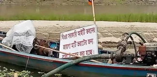 সরকারি প্রকল্পের নামে ভুয়া সাইনবোর্ড টানিয়ে অবৈধভাবে বালু উত্তোলন করছে বিএনপি...