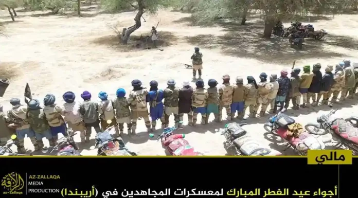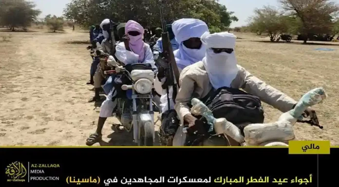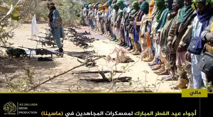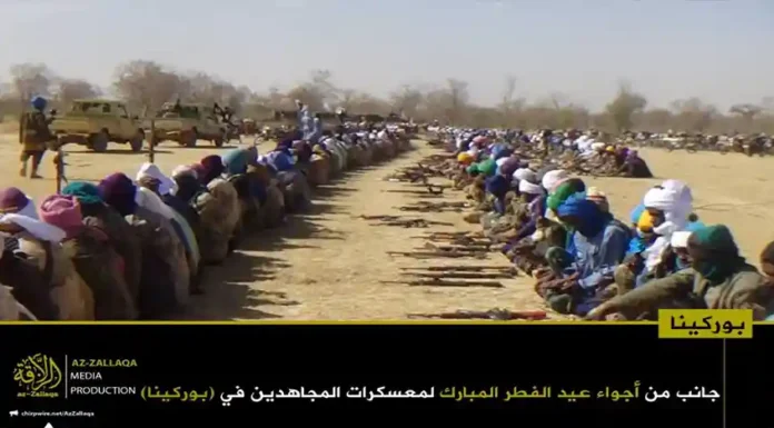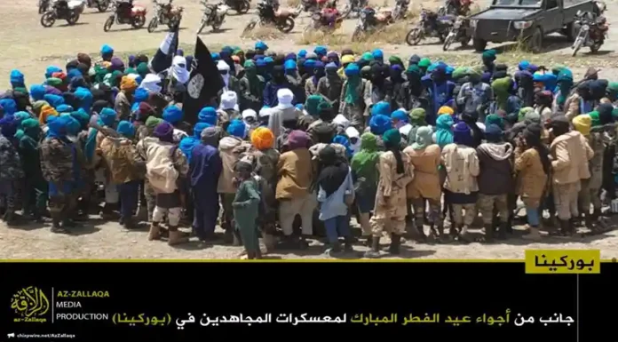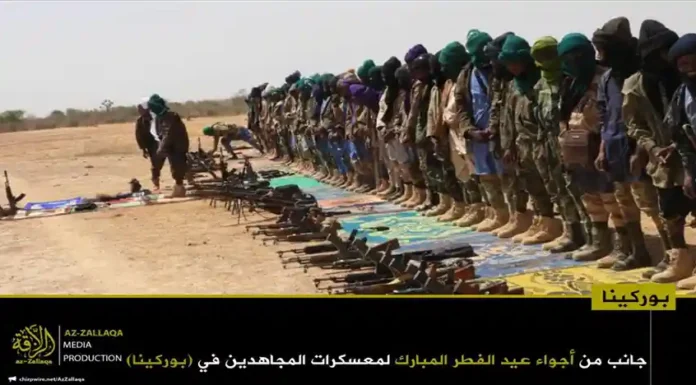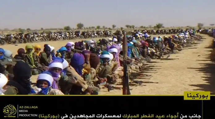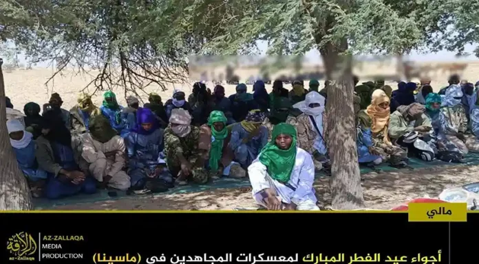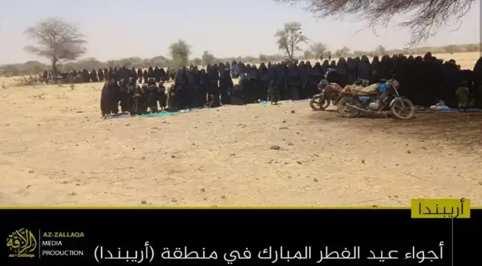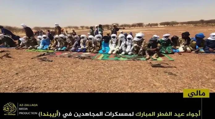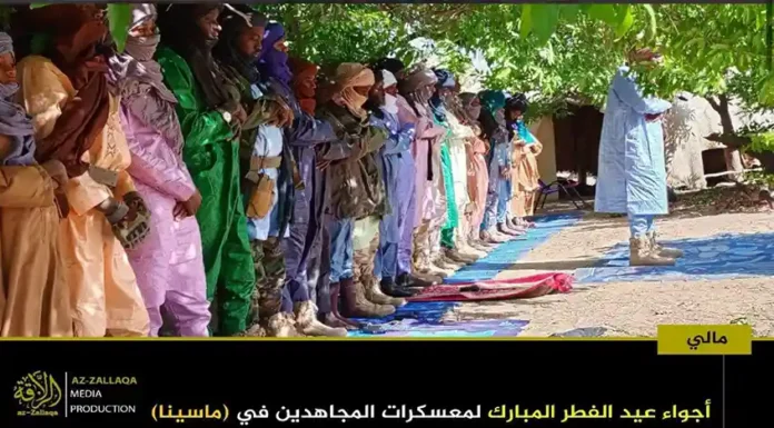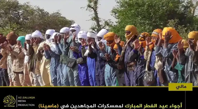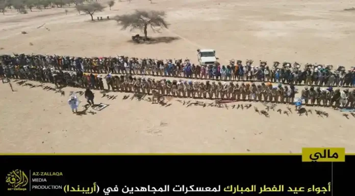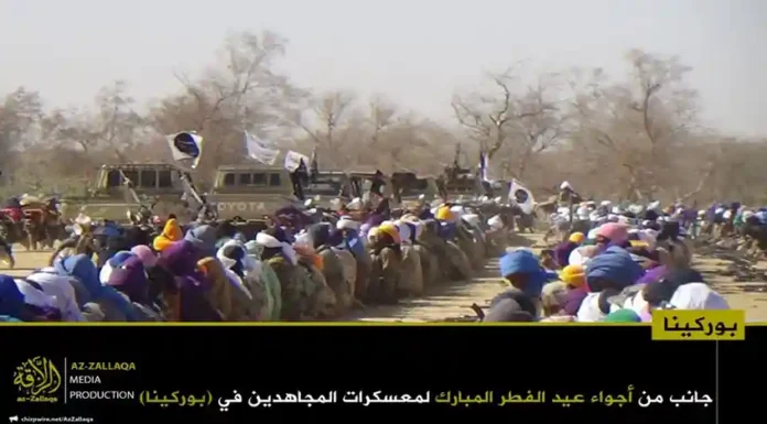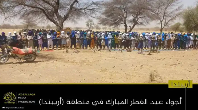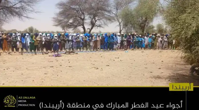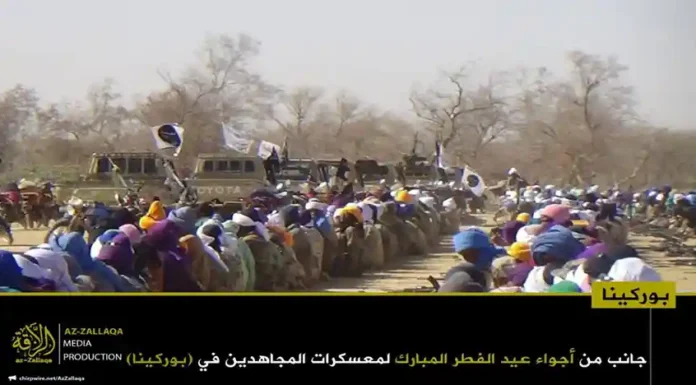 আল-কায়েদা ইসলামি মাগরিবের সক্রিয় সামরিক শাখা জামা’আত নুসরাতুল ইসলাম ওয়াল মুসলিমিন (জেএনআইএম)। দলটির মুজাহিদিনরা গত রবিবার তাদের নিয়ন্ত্রিত অঞ্চলগুলোতে জনগনকে সাথে নিয়ে পবিত্র ঈদুল ফিতর উদযাপন করেছেন। এই উপলক্ষে দলটির প্রচার মিডিয়া আয-যাল্লাকা থেকে অর্ধশতাধিক ছবি প্রকাশ করা হয়েছে, যেখানে বুরকিনা ফাসো ও মালির বিভিন্ন অঞ্চলে মুজাহিদদের ঈদের আনন্দঘন মুহুর্তগুলো তুলে ধরা হয়েছে।