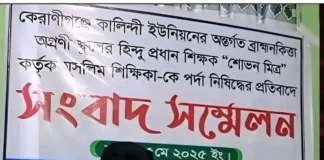 নিকাব পরিধান করায় স্কুল শিক্ষিকাকে ক্লাসে যেতে নিষেধ করেছে হিন্দু প্রধান...