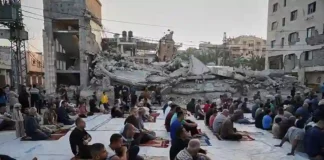 ভিডিও || গাজায় ধ্বংসপ্রাপ্ত মসজিদের সামনে ঈদুল আযহার নামাজ আদায় করছেন...