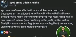 নবী সাল্লাল্লাহু আলাইহি ওয়া সাল্লামকে নিয়ে দম্ভভরে কটূক্তি প্রাক্তন বুয়েট শিক্ষার্থীর