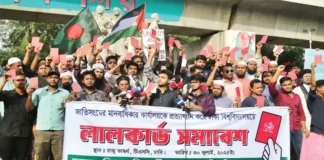 জাতিসংঘের মানবাধিকার কমিশনের কার্যালয়কে লাল কার্ড দেখিয়ে ঢাবি শিক্ষার্থীদের বিক্ষোভ