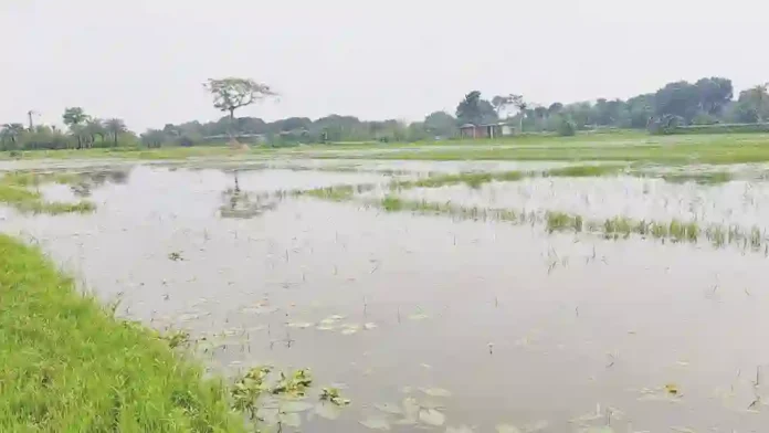 রাজশাহীর দুর্গাপুর উপজেলার বিভিন্ন এলাকায় টানা বৃষ্টিতে তলিয়ে গেছে ৫০০ বিঘার অধিক ফসলি জমি। তার মধ্যে অনেক জমিতে ছিল আমন ধান। এ ছাড়া বিভিন্ন স্কুল, কলেজ ও কাঁচা-পাকা রাস্তায় জলাবদ্ধতা দেখা দিয়েছে। অবৈধভাবে অপরিকল্পিত পুকুর খননের ফলে খালের মুখ বন্ধ হয়ে পড়ায় এমন জলাবদ্ধতার সৃষ্টি হয়েছে বলে জানিয়েছে ভুক্তভোগীরা। এদিকে পানি নিষ্কাশন ব্যবস্থা না থাকায় চরম ভোগান্তিতে পড়ছে স্থানীয়রা।