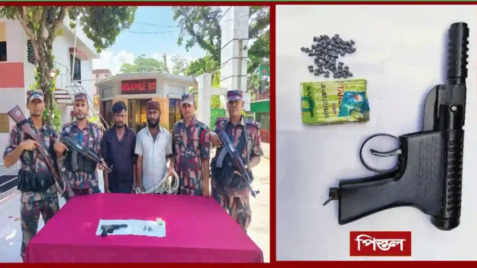 বেনাপোল আইসিপিতে আমদানিকৃত ভারতীয় মরিচ বোঝাই ট্রাকে তল্লাশি চালিয়ে ১টি পিস্তল ও ৯৩ রাউন্ড গুলিসহ ট্রাকের চালক ও হেলপারকে আটক করেছে বিজিবি। আটককৃতরা হল, গুরজীত সালুজা (৩১) ও রাম দাস নাওয়াদি (২৪)।