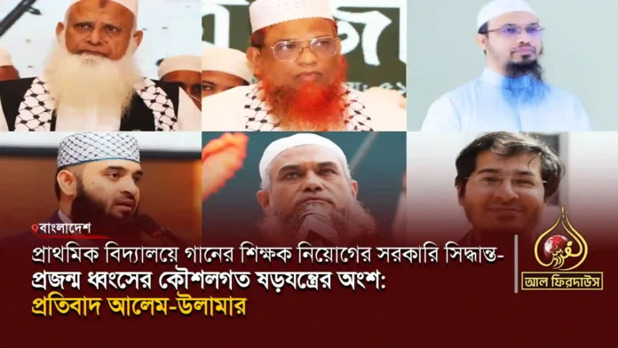 প্রাথমিক বিদ্যালয়ে গানের শিক্ষক নিয়োগের সরকারি সিদ্ধান্ত- প্রজন্ম ধ্বংসের কৌশলগত ষড়যন্ত্রের অংশ: প্রতিবাদ আলেম-উলামার