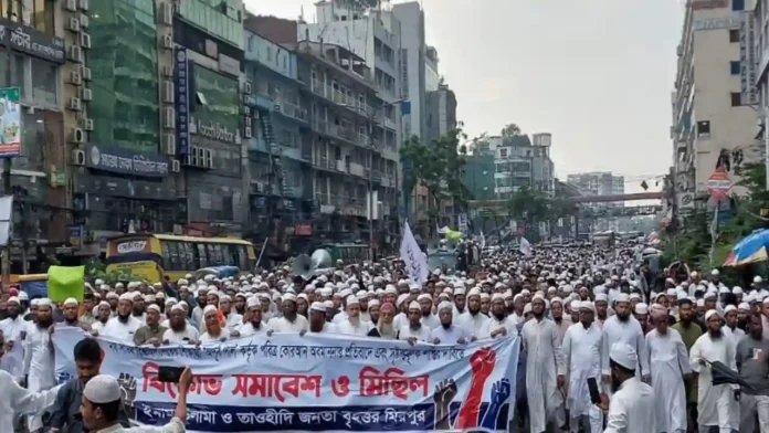 ১০ অক্টোবর, শুক্রবার জুমার নামাজের পর ইমাম-উলামা ও তাওহীদি জনতার উদ্যোগে মিরপুর-১ নম্বর গোলচত্বরে অনুষ্ঠিত হওয়া বিক্ষোভ সমাবেশ পরিচালনায় ছিলেন মাওলানা নূর মোহাম্মদ কাসেমী ও মাওলানা আখতারুজ্জামান কাসেমী। সভাপতিত্ব করেন আরজাবাদ মাদরাসার মুহতামিম মাওলানা বাহাউদ্দীন যাকারিয়া।