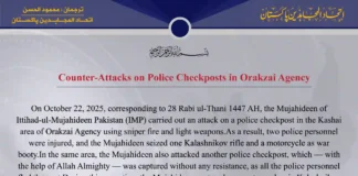 ওরাকজাই এজেন্সিতে শত্রু পুলিশ চেকপোস্টে ইত্তেহাদুল মুজাহিদিন পাকিস্তানের পৃথক অভিযান: হতাহত...