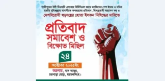সন্ত্রাসী ইসকন নিষিদ্ধের দাবিতে ময়মনসিংহে আজ প্রতিবাদ সমাবেশ অনুষ্ঠিত হবে