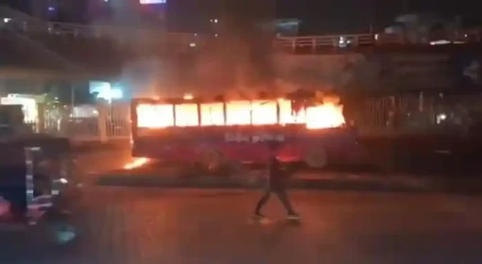 ১। রামপুরায় বাসে আগুন
