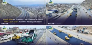 কাবুল-লোগার সড়কে ১ম ধাপের অবশিষ্ট ১ কিলোমিটার অংশে পিচঢালাই সমাপ্তির দ্বারপ্রান্তে