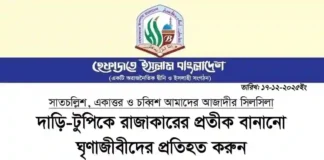 দাড়ি-টুপিকে রাজাকারের প্রতীক বানানো ঘৃণাজীবীদের প্রতিহত করুন: হেফাজতে ইসলাম
