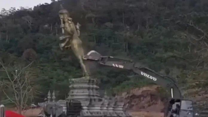 গত সোমবার (২২ ডিসেম্বর) থাই সামরিক বাহিনী একটি এক্সকাভেটর ব্যবহার করে বিষ্ণুর মূর্তিটি গুঁড়িয়ে দেয়। এটি থাইল্যান্ড সীমান্ত থেকে প্রায় ১০০ মিটার (৩২৮ ফুট) দূরে ছিল।