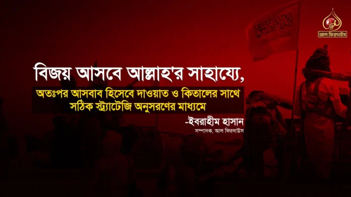 অনেক অবুঝ জিহাদি সংগঠনের মতো কেবল জজবা দিয়ে নয়। বরং বাস্তবতা, নিজেদের ও শত্রুর সামর্থ্য বিবেচনায় নিয়ে ধাপে ধাপে তারা আজ এই অবস্থানে এসে দাড়িয়েছেন। শরিয়তের পাবন্দ, আমিরের আনুগত্য, হিকমতের সুনিপুণ ব্যবহার, জজবার উপর বাস্তবতাকে প্রাধান্য দেওয়া ইত্যাদি উত্তম স্ট্র্যাটেজির মাধ্যমে আজকে ইনশাআল্লাহ আমরা নতুন এক ইসলামি ইমারাহ পাওয়ার সন্ধিক্ষণে দাঁড়িয়ে।