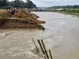 সুনামগঞ্জে ভারতের পাহাড়ি ঢলে বাঁধ ভেঙে তলিয়ে যাচ্ছে কয়েকশ হেক্টর বোরো জমি