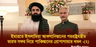 ইমারতে ইসলামিয়া আফগানিস্তানের পররাষ্ট্রমন্ত্রীর ভারত সফর নিয়ে পাকিস্তানের প্রোপাগান্ডার খণ্ডন -(২)