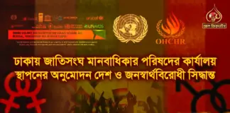ঢাকায় জাতিসংঘ মানবাধিকার পরিষদের কার্যালয় স্থাপনের অনুমোদন দেশ ও জনস্বার্থবিরোধী সিদ্ধান্ত