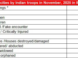 নভেম্বর মাসে দখলদার ভারতীয় বাহিনীর হাতে এক নারীসহ ৪ কাশ্মীরি মুসলিম শহীদ, গ্রেফতার ২৮১৯ জন