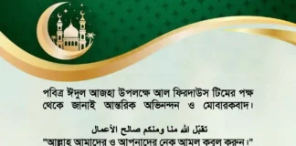 পবিত্র ঈদুল আজহা উপলক্ষে আল ফিরদাউস টিমের পক্ষ থেকে জানাই আন্তরিক...